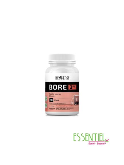 - Dosage : Chaque gélule contient 3 mg de bore élémentaire, provenant de 30 mg de glycine bororganique (Albin laboratories).