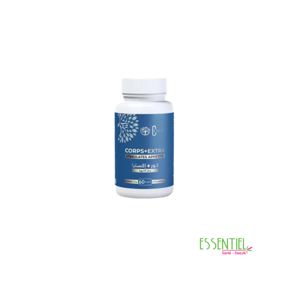 Corps+Extra est un complément alimentaire, fabriqué par le laboratoire tunisien Coalvi, qui vise à stimuler l’appétit et favoriser une prise de poids saine. Il est souvent recommandé aux personnes souffrant de manque d’appétit, aux individus ayant du mal à prendre du poids ou à ceux qui ont une activité physique intense.