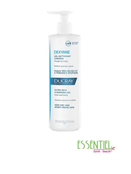 Ducray Dexyane Gel Nettoyant Surgras 400 ml est un gel nettoyant surgras pour le visage et le corps, recommandé pour nettoyer, protéger, apaiser les peaux très sèches et à tendance atopique de toute la famille.