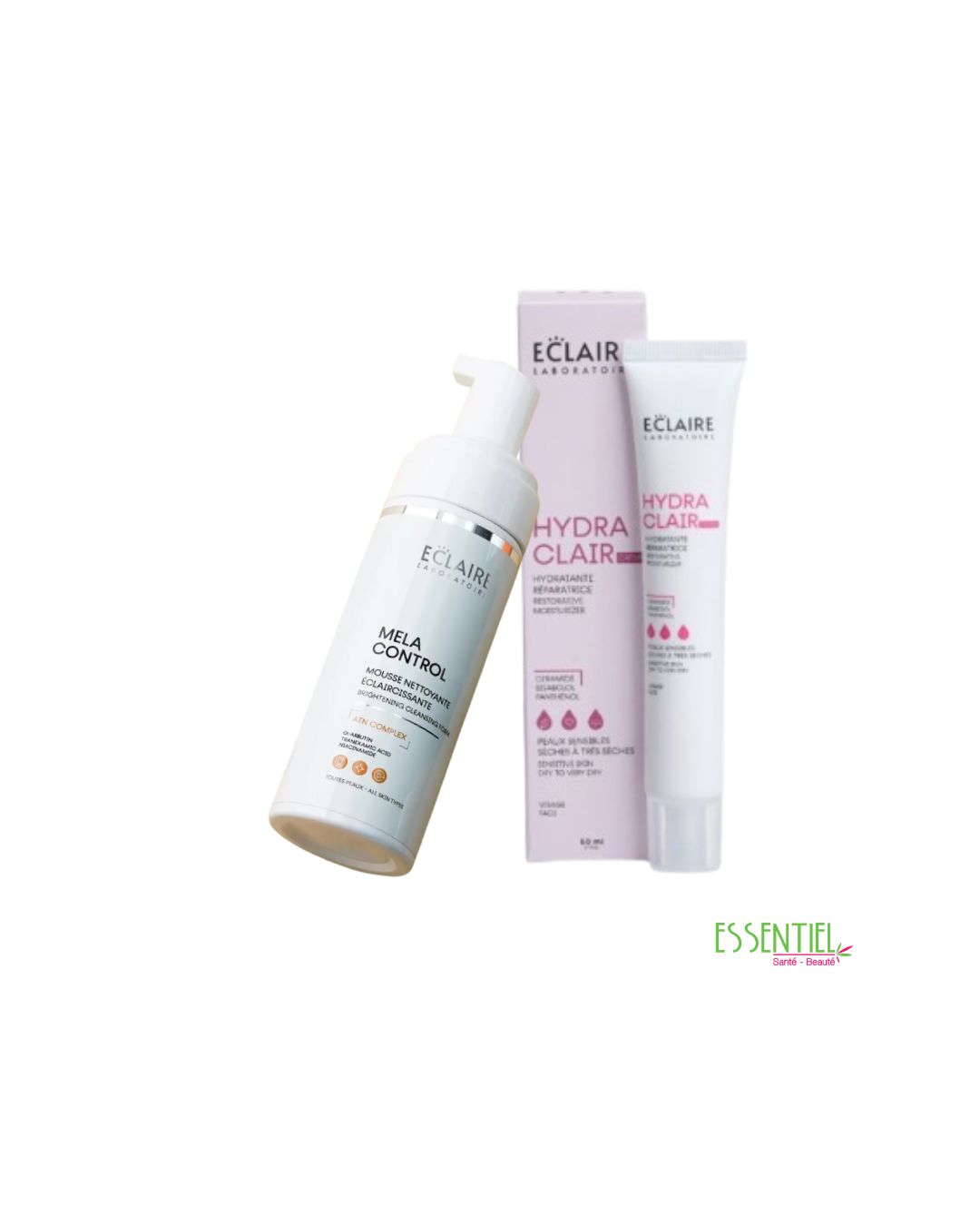 Le pack Eclaire Mela Control est une routine de soin dépigmentante et éclaircissante conçue pour traiter les taches brunes et l’hyperpigmentation. Il combine généralement la mousse nettoyante et la crème dépigmentante pour unifier le teint et redonner de l’éclat.