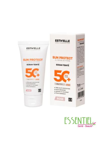 ESTHELLE SUN PROTECT TEINTE ROSE SOLAIRE intègre une protection solaire à l’indice SPF 50+, PA+++