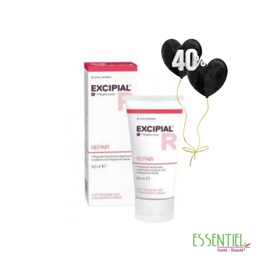 Excipial Repair est une crème mains spécialement formulée pour réparer, protéger et hydrater intensément les mains très sèches, abîmées ou irritées. Elle est idéale pour les personnes exposées au froid, au lavage fréquent des mains, aux produits ménagers ou aux agressions quotidiennes.