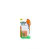 Brossette prête à l’emploie, ne nécessitant aucun montage, spécialement conçue pour une utilisation EN DEHORS de CHEZ SOI ( lieu de travail, voyage….). On peut allonger le manche en adaptant le capuchon.Pour répondre à la nouvelle réglementation ISO, le laboratoire n’indique plus sur le conditionnement les dimensions de la brossette. Il fait apparaître la LARGEUR DE L’ESPACE INTERDENTAIRE dans lequel se glisse la brossette.