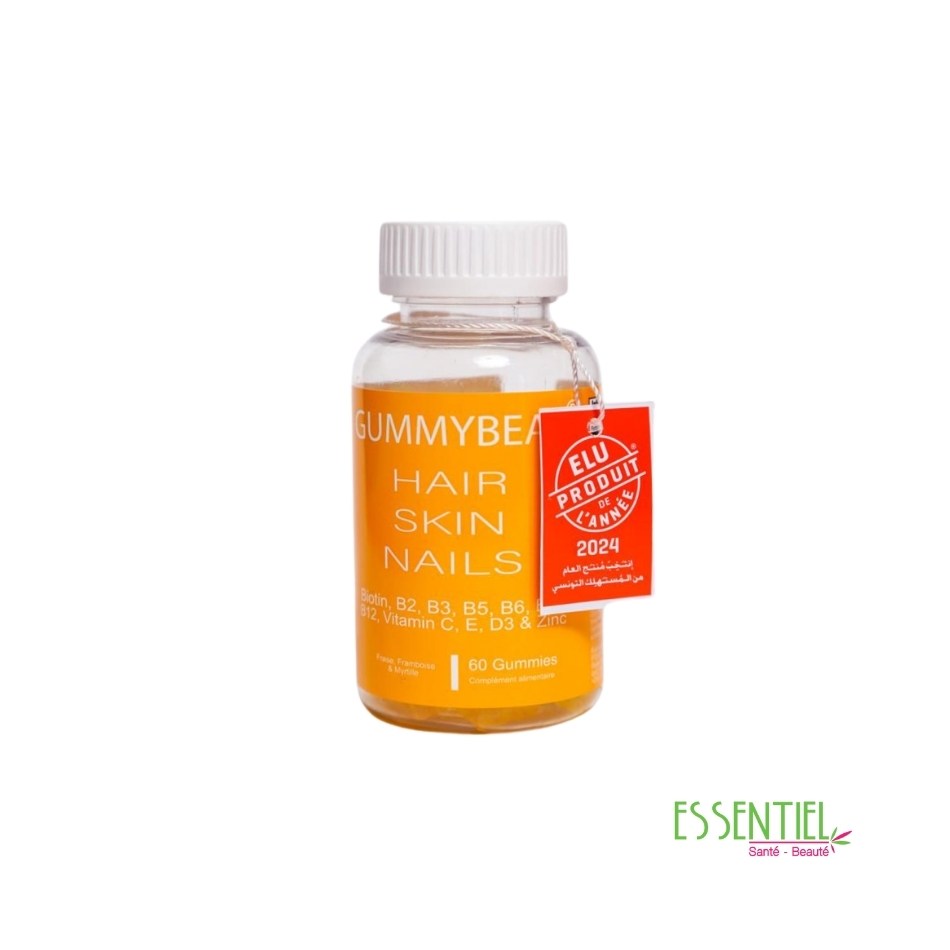 GUMMYBEAR Hair Skin et Nails est un complément alimentaire sous formes des bonbons gélifiés multivitaminés et riches en Biotine, Idéale pour renforcer les Cheveux, les ongles et donner de l’éclat à votre peau tout en boostant votre vitalité globale et vos défenses immunitaires.