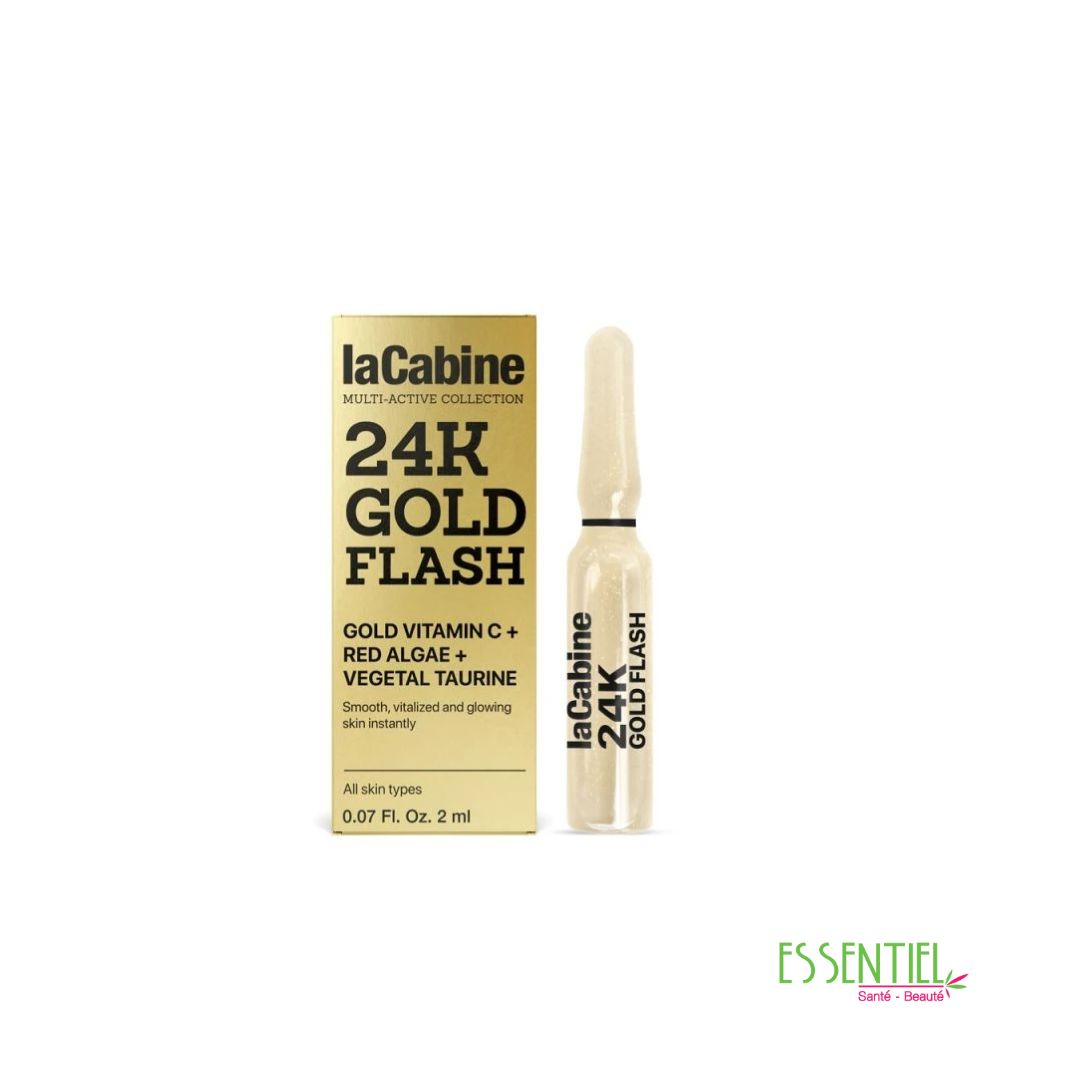 laCabine 24K Gold Flash Édition Limitée 1 Ampoule 2 ml est un soin concentré qui apporte un effet tenseur immédiat tout en aidant à combattre les signes de fatigue et de l’âge de votre visage. Une peau lisse et douce pleine de vitalité avec la beauté de l’or scintillant.