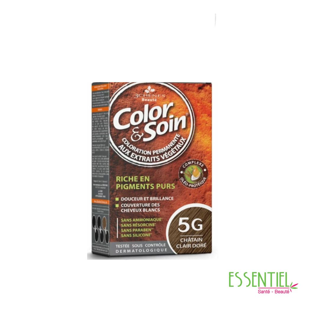 Color & Soin châtain clair doré 5G est une coloration permanente qui couvre 100% des cheveux blancs dès la première application, et leur apporte douceur et brillance.