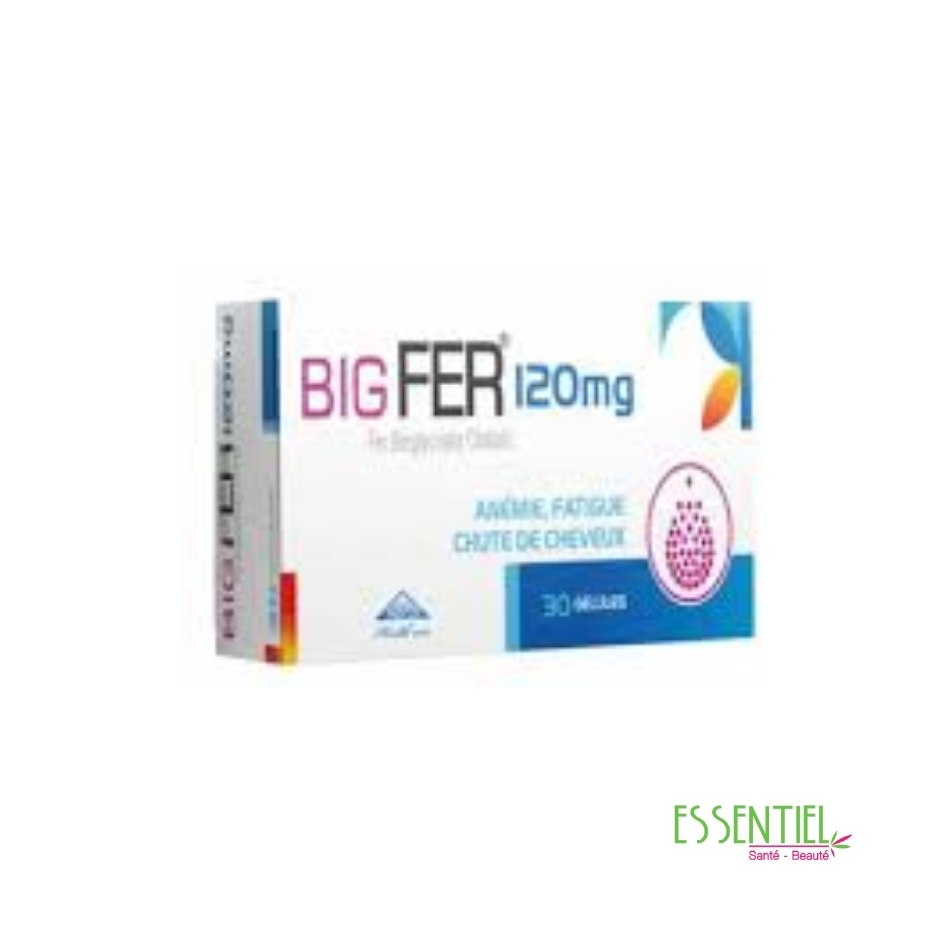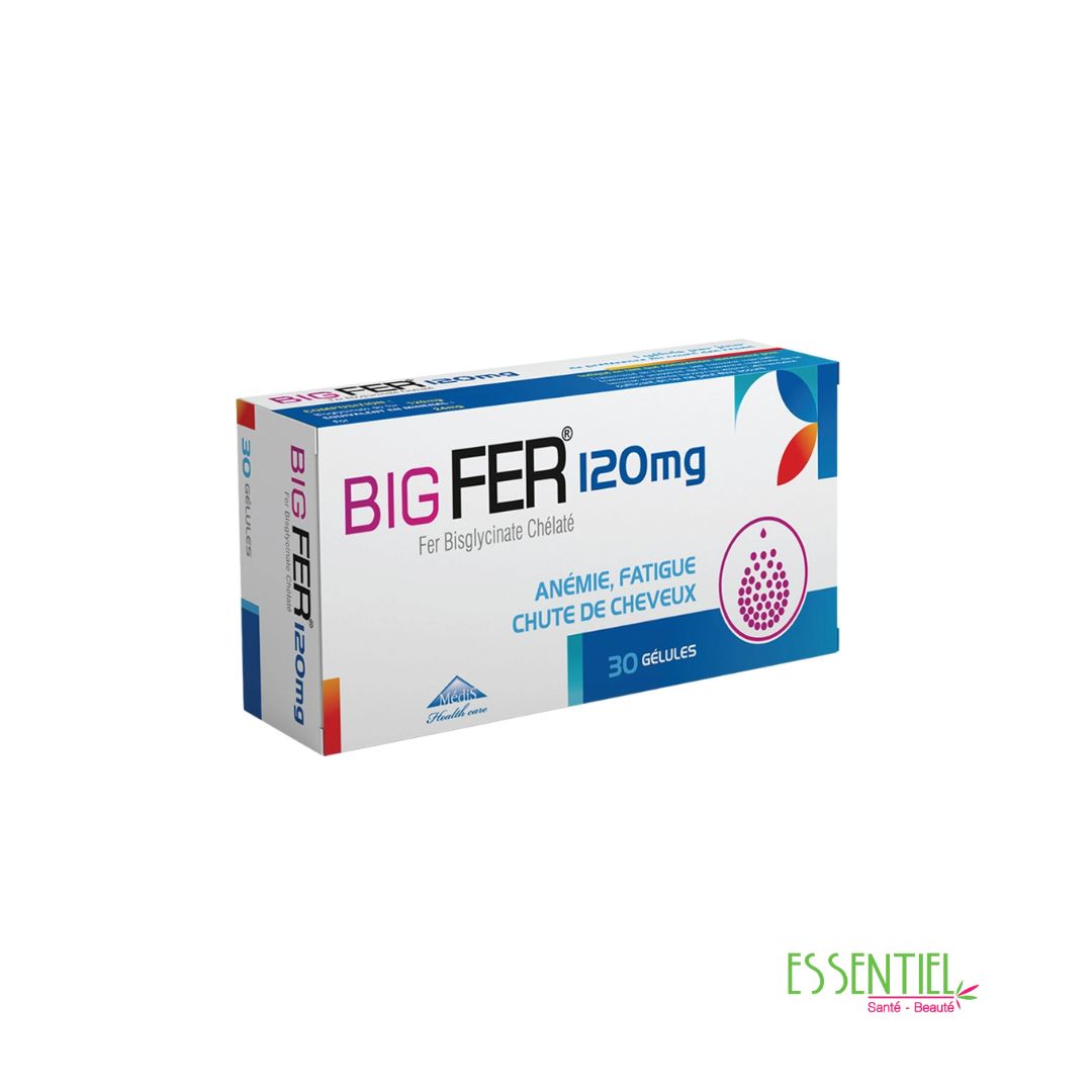 Grâce à son dosage puissant et sa bonne tolérance, Bigfer 120 mg est une solution fiable pour traiter les déficits en fer importants et accompagner l’organisme dans sa récupération.