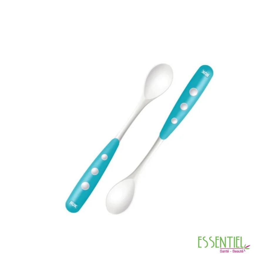 Le lot de 2 cuillères en silicone NUK (6m+) est spécialement conçu pour faciliter la diversification alimentaire des nourrissons dès l’âge de 6 mois.