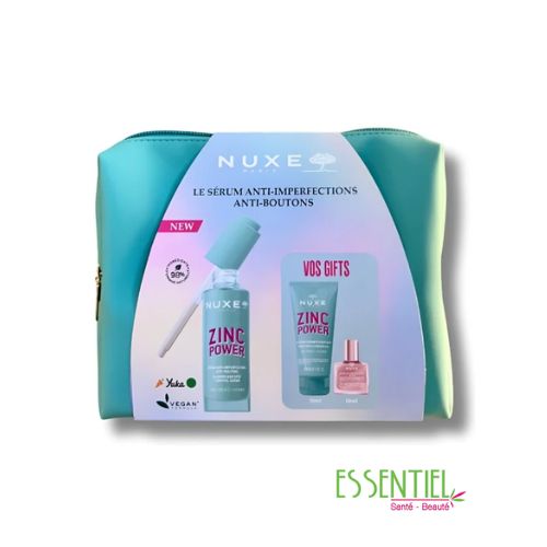 Cette trousse NUXE offre une routine anti-acné complète et experte grâce au duo Gelée + Sérum Zinc Power anti imperfections anti boutons, tout en intégrant le plaisir et l’éclat de l’Huile Prodigieuse, le tout dans une trousse pratique.