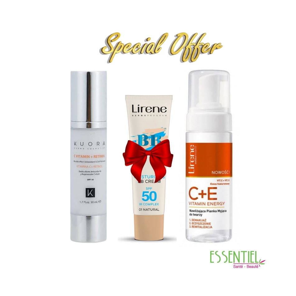 - Bénéfices clés : La vitamine C (5%) agit comme un puissant antioxydant, illumine et unifie le teint, et améliore l’élasticité. Le rétinol stimule le renouvellement cellulaire et la production de collagène, lissant visiblement les rides et réduisant l’hyperpigmentation.