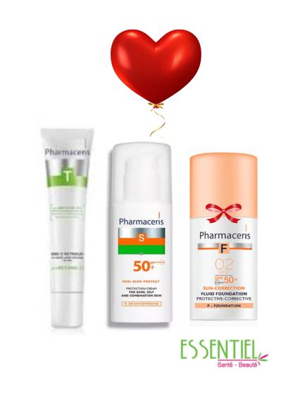 Ce pack Pharmaceris est une routine complète de soin et de protection solaire conçue pour les peaux adultes à tendance acnéique, grasses ou mixtes, et sujettes aux rides. Il combine un traitement de nuit anti-acné et anti-âge, une protection solaire matifiante, et un fond de teint haute couvrance avec SPF 50+.