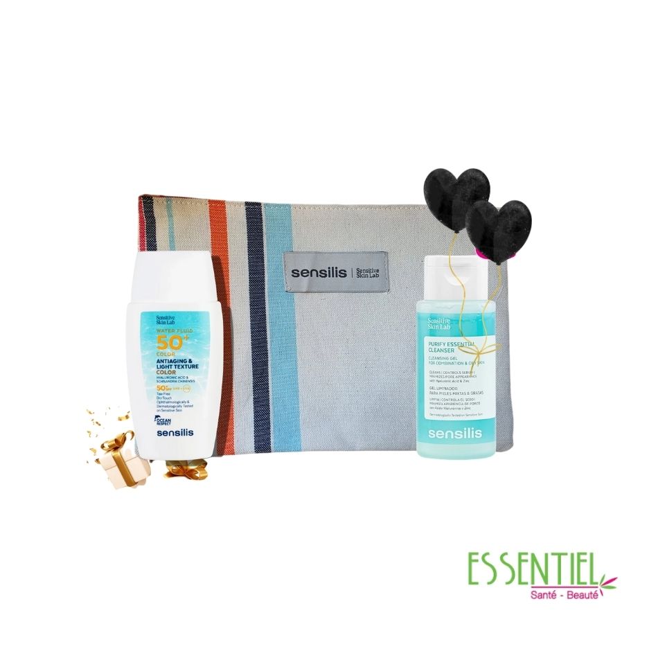 Sensilis Pack Sensilis Water Fluid SPF50+ Color + PURIFY ESSENTIAL CLEANSER 100ML OFFERT + Trousse
