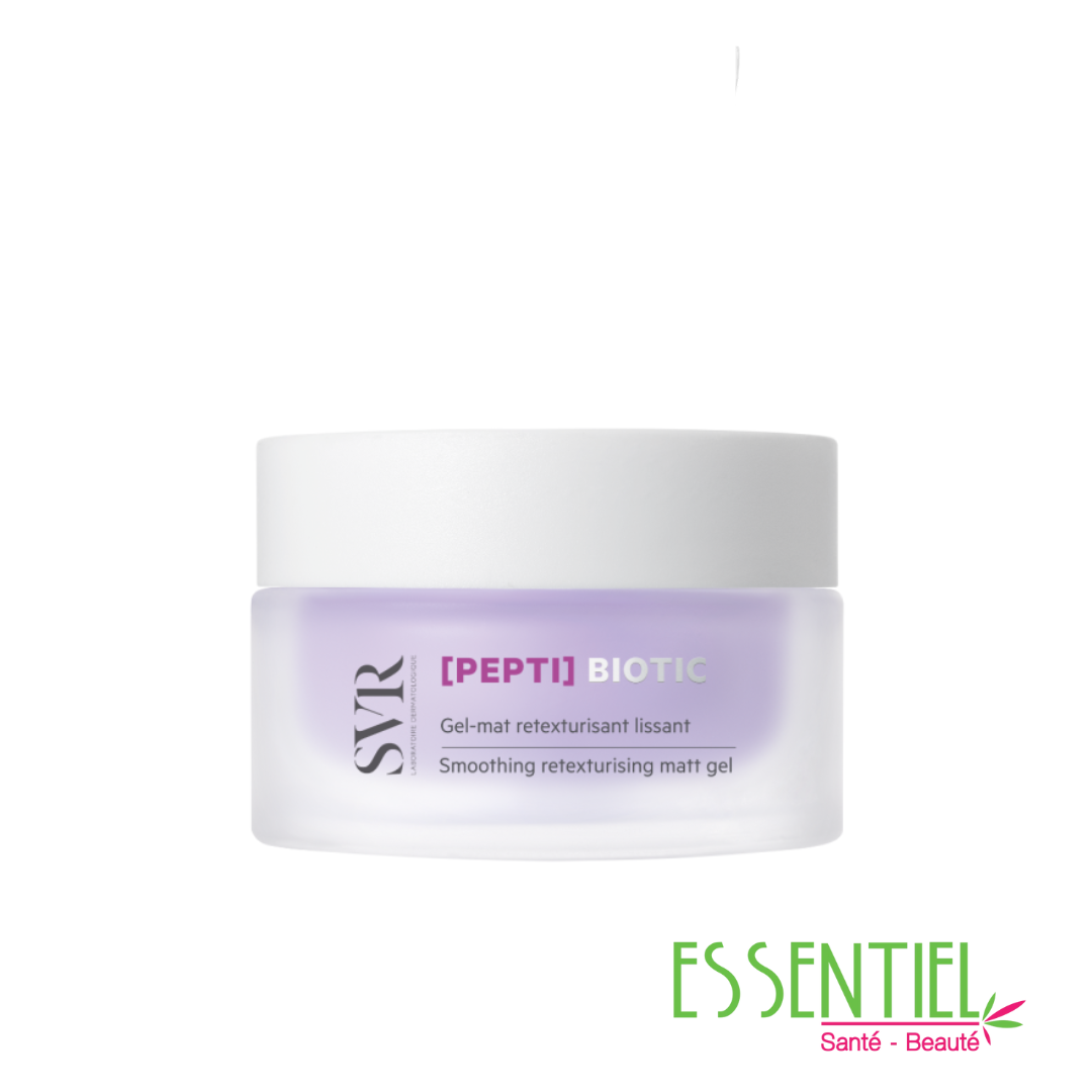 SVR Biotic Pepti Gel-Mat Retexturisant Lissant 50 ml est spécialement conçu pour traiter les pores dilatés, les imperfections et les rides des peaux sensibles.