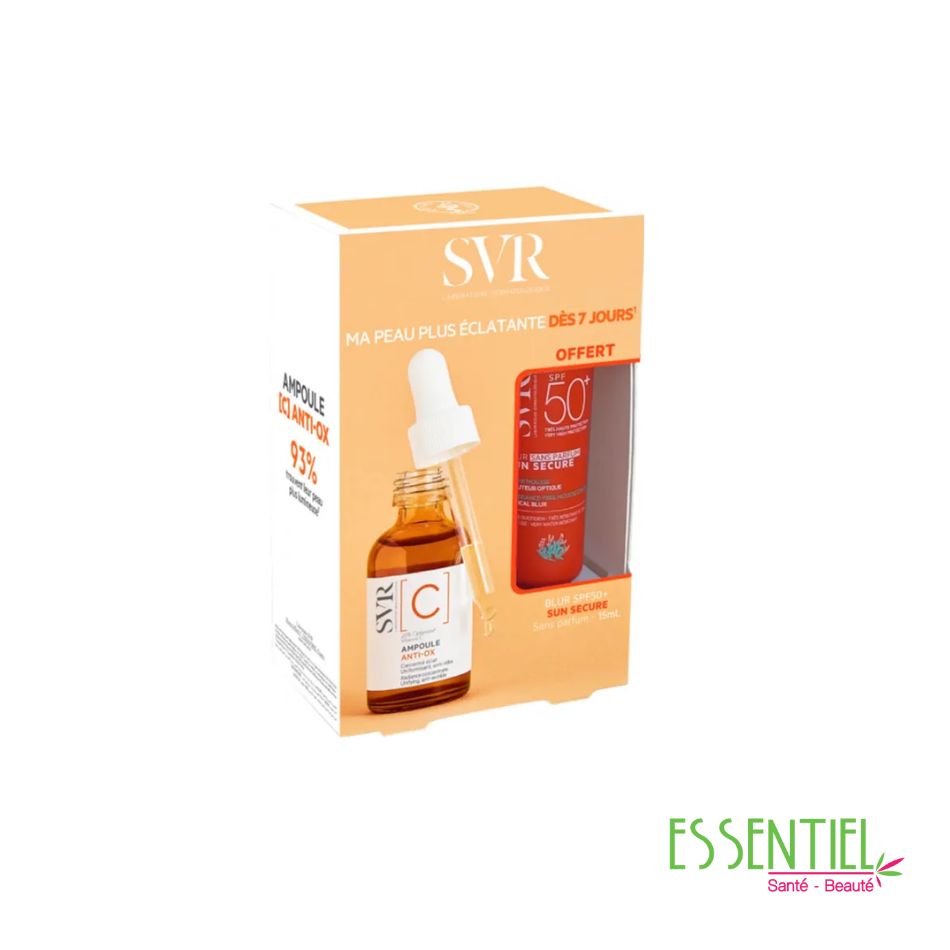Ampoule anti-ox concentré éclat [C] des Laboratoires SVR, sérum ultra-concentré en vitamine C optimisée (20%), qui permet de recharger la peau et de réguler la synthèse de mélanine.