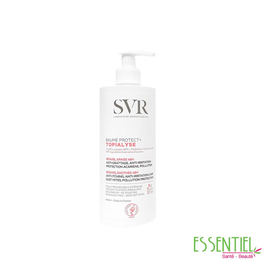 TOPIALYSE BAUME PROTECT+, une formule concentrée en actifs dermatologiques et très haute tolérance pour une peau apaisée, réparée et protégée.