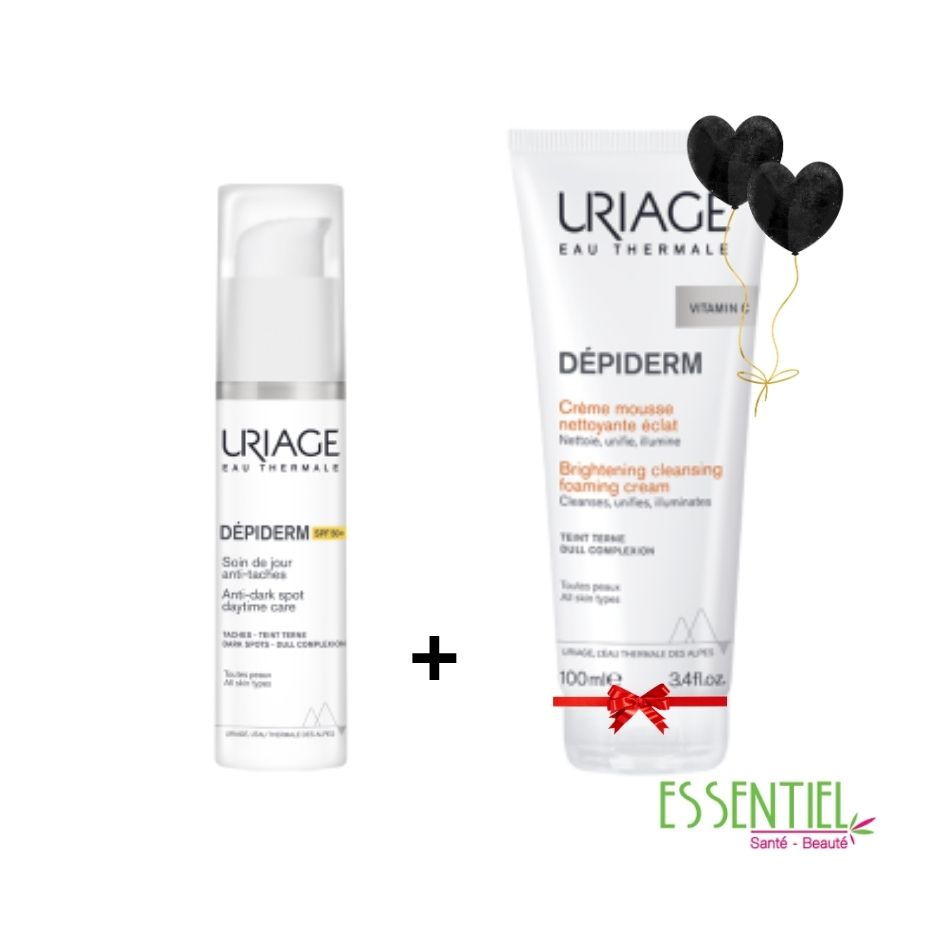+86%*TEINT UNIFIÉ TEINT LUMINEUX : 90%** INTENSITE DES TACHES ATTENUEE : 78%+ DÉPIDERM – CRÈME MOUSSE NETTOYANTE ÉCLAT