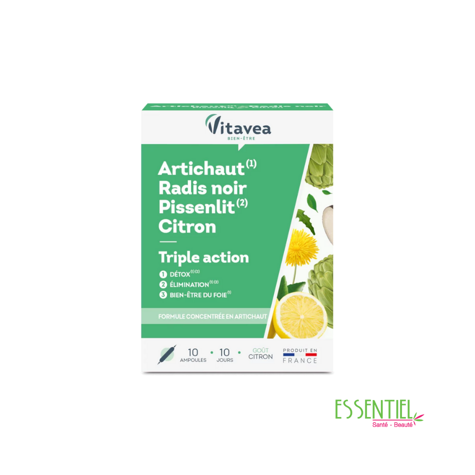 La formule Artichaut Radis noir Pissenlit CitronVITAVEA Bien-être est votre alliée détox, elle favorise le bien-être du foie et l’élimination.